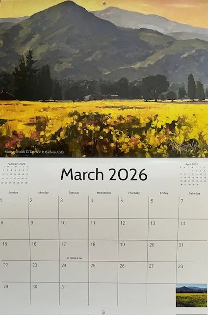 Categories: All Mountain Town Valley Coastal All Paintings All | Mountain | Town | Valley | Coastal | 2026 Calendar $24.00 Midsummer Daydreams $750.00 Summer's In Full Swing $850.00 Rising Oak School $600.00 Coastal Dunes $750.00 Terrace Market $850.00 Fall on Arroyo Calero $575.00 On The Job $850.00 Miner's Glory $1,000.00 Atop Tunnel Top $575.00 Sold out Golden Gate at Golden Hour $850.00 Snowy Shore $575.00 Turquoise House $575.00 Fall Diagonal $675.00 Sold out Light On The Coast $400.00 Paul's Airstream $750.00 Sunset Layers $400.00 Dreams of Spring $400.00 Fall in Yosemite $400.00 Duck Days $575.00 Lake Blues $575.00 Wild Abandon $750.00 Buttermilk Rocks $1,600.00 Sold out Mustard with El Toro On It $1,000.00 St Mary's in the Mountains $750.00 Pillar Point $1,600.00 Clearing on the Coast $750.00 Lourde's Ice Cream Shop $750.00 End of the Road $575.00 It's as If it's my Birthday $600.00 Winter's Exhale $750.00 Simple Living $750.00 Draped in Snow $750.00 Truckee River $575.00 Til the Cows Come Home $1,000.00 Mist on the Meadows (Tuolumne Meadows) $400.00 Out in Lefty's Field $850.00 Al Fresco $850.00 Island Glow $1,000.00 Point Lobos Lookout $575.00 Garrapata Sunset $750.00 Bird Rock $400.00 Doug's Garden $575.00 Car Show $600.00 Fall Sparklers $575.00 Mission Ranch $750.00 Oak and Mustard $750.00 Spring in Watsonville $750.00 Dry Brush $600.00 Caliente Ranch $600.00 Lone Pine $750.00 Santa Teresa Ranch $750.00 Poppy House $550.00 The Tank House $750.00 Home and Garden $850.00 Sold out Lundy Lake $600.00 Beached $400.00 Half Dome, Fall Glory $750.00 Red Canoe $750.00 Canoe Garden $750.00 Sold out Last Hay Baling $850.00 Evening Exhale $575.00 The Twins $600.00 Repeating Shapes $1,000.00 Coastal Garden $575.00 Sold out Hilltop View $600.00 Pile of Rocks $850.00